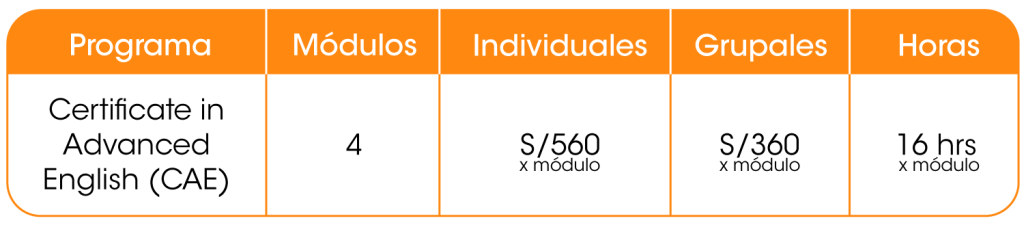 Este examen es aceptado en más de 8,000 instituciones educativas u organismos oficiales a nivel mundial. La preparación en este curso, C1 Advanced, te ayuda a adquirir las destrezas lingüísticas necesarias para estudiar, trabajar o residir en los países angloparlantes.